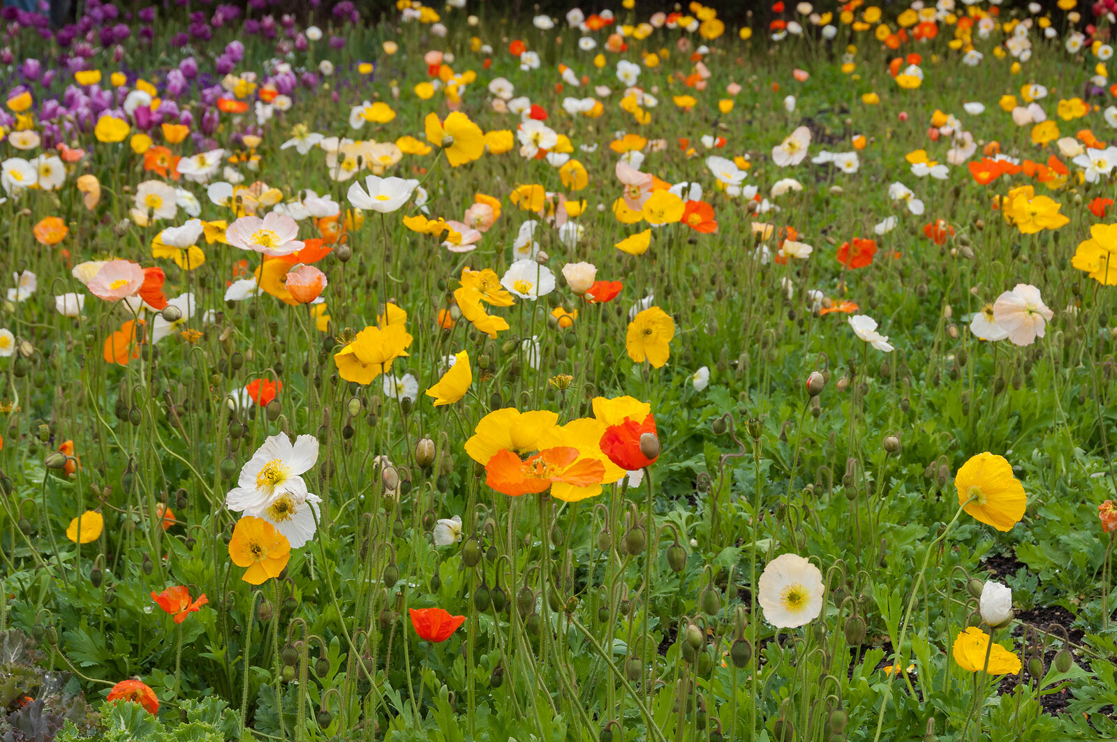 Annuals: Cut flowers for indoor displays. Cut flowers for drying. Deadhead faded flowers or shear back plants to promote reblooming. Collect seeds from selected flower heads. Shear back plants whose blooms are slowing to promote re-blooming, or remove and replace with new plants. Remove and replace worn-out plants. Renew fading flowerbeds by filling them with fast-growing marigolds, zinnias, and annual vinca. Pinch back tall-growing plants. Train vines and climbing annuals. Stake tall-growing plants. Sow pansies and hardy annual seeds indoors or outdoors. Sow biennial seeds indoors or outdoors. Direct-sow foxglove, larkspur, cosmos, and hollyhocks. Sow calendula, myosotis, stock, viola, and wallflower. Thin biennial seedlings. Water as needed. Fertilize plants. Weed flower beds. Lay fresh mulch on beds and borders. Watch for pests and signs of disease. Combat pests and fungal disease using organic means, applying insecticides and fungicides only if necessary. Prepare soil for fall planting.