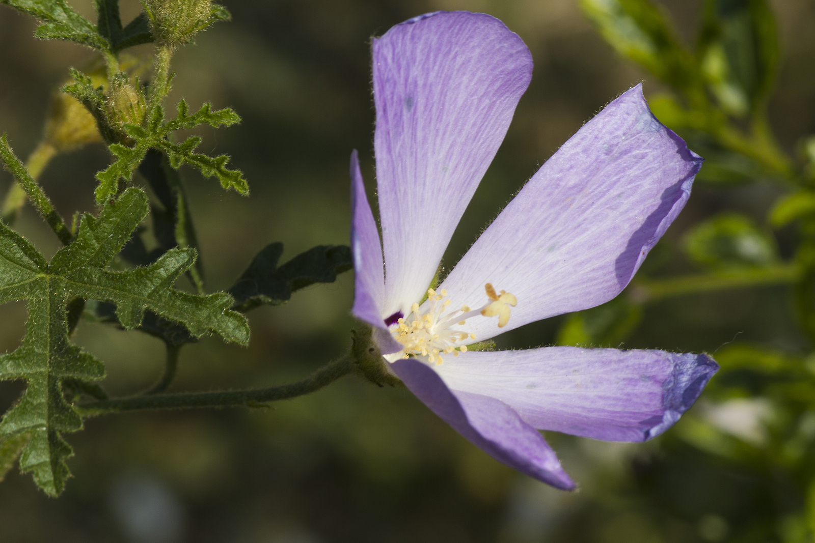 Alyogyne has an open, loose habit; it makes a bright addition of a shrub border. Flowers have a satiny texture. Flowers stand out against the plant’s palmate, bright green leave; the leaves have 5 irregular toothed lobes.