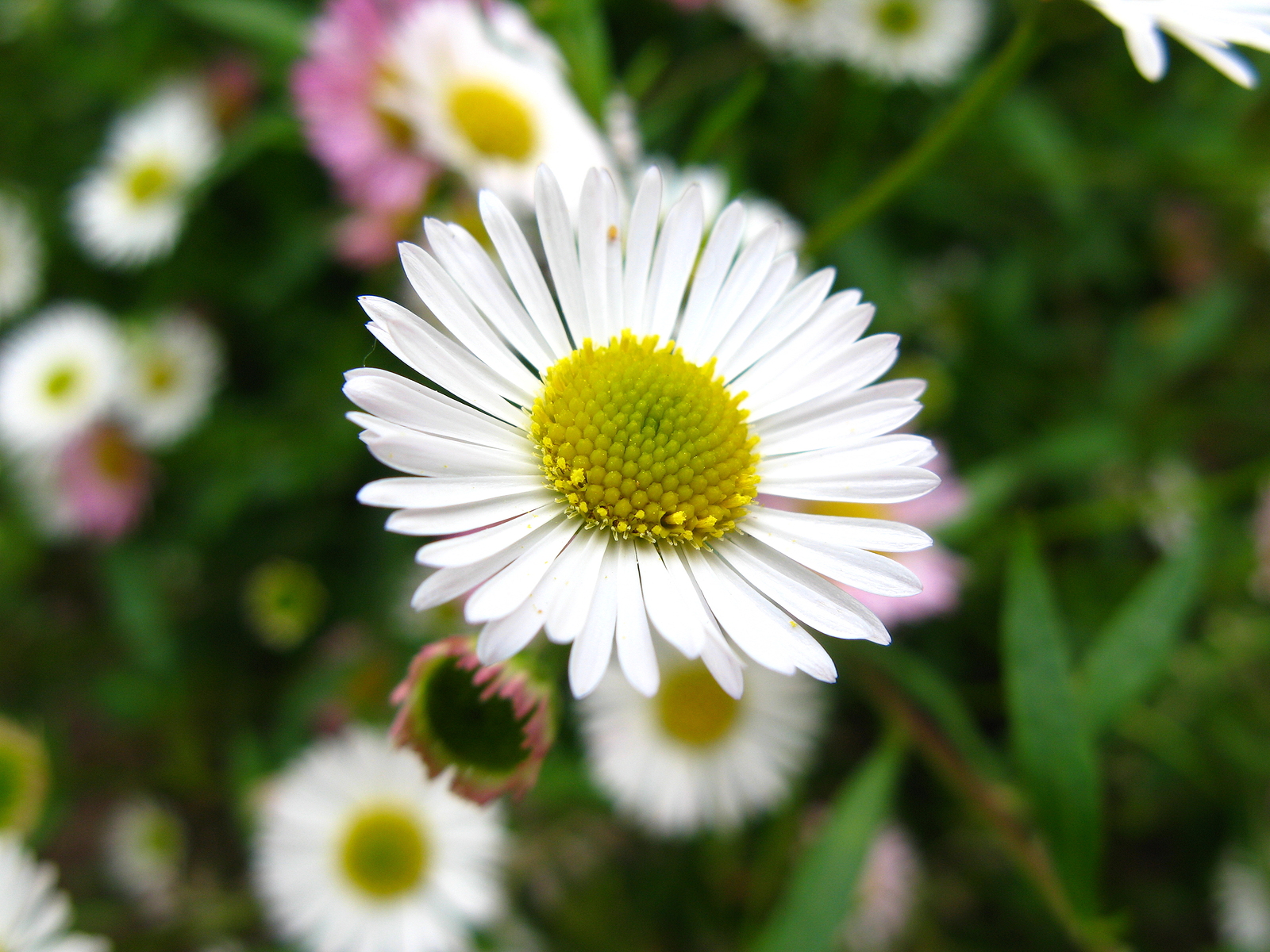 - Anthemis carpatica: green to gray-green mounds; 1.5 inches white, yellow-centered daisies on 6-inch (15cm) stems in spring and summer.
