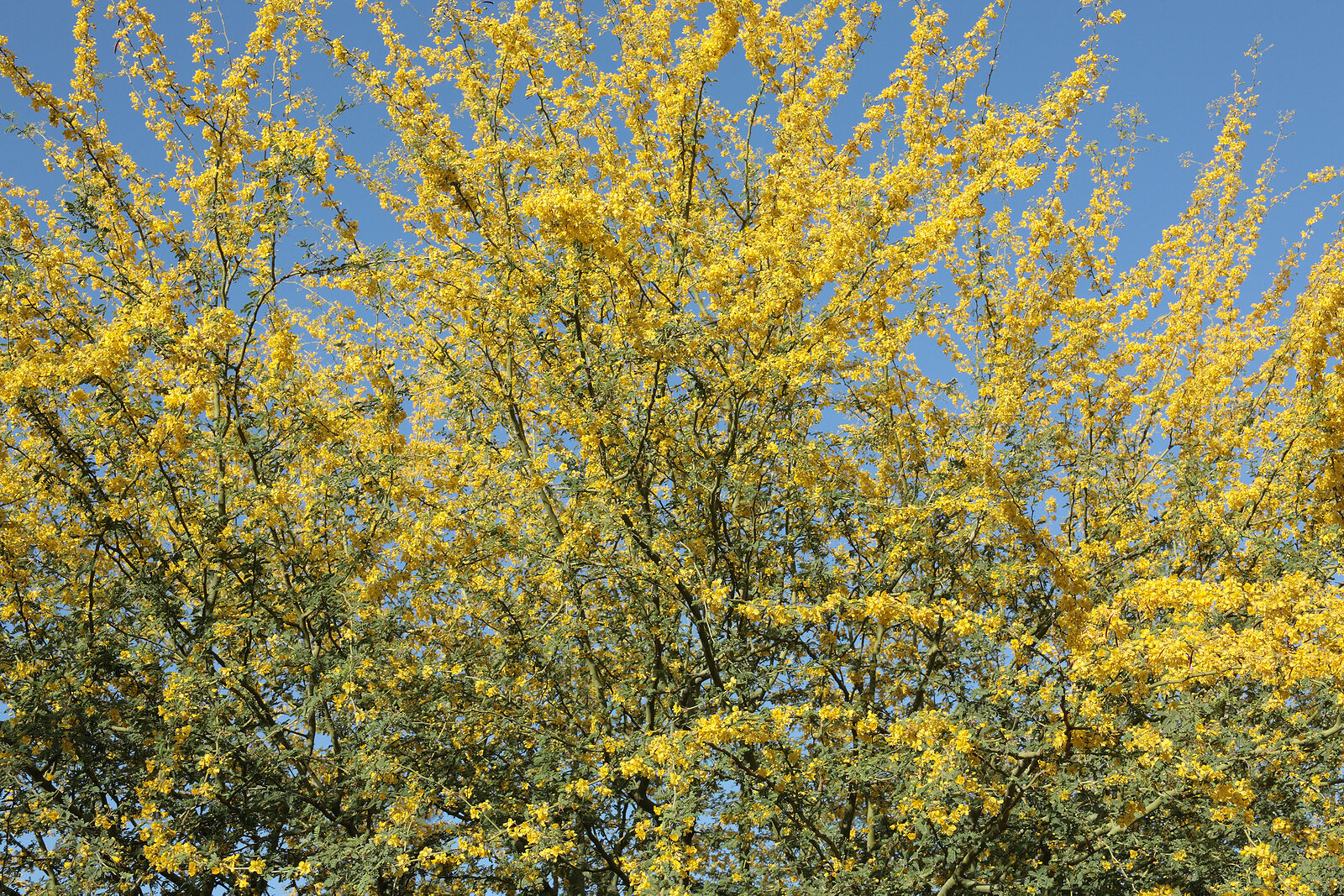 Cercidium is an open, airy tree with mid-green leaflets. It admits light and gives dappled shade. Cercidium bears clusters of yellow flowers in spring. The petals are short and claw-like.