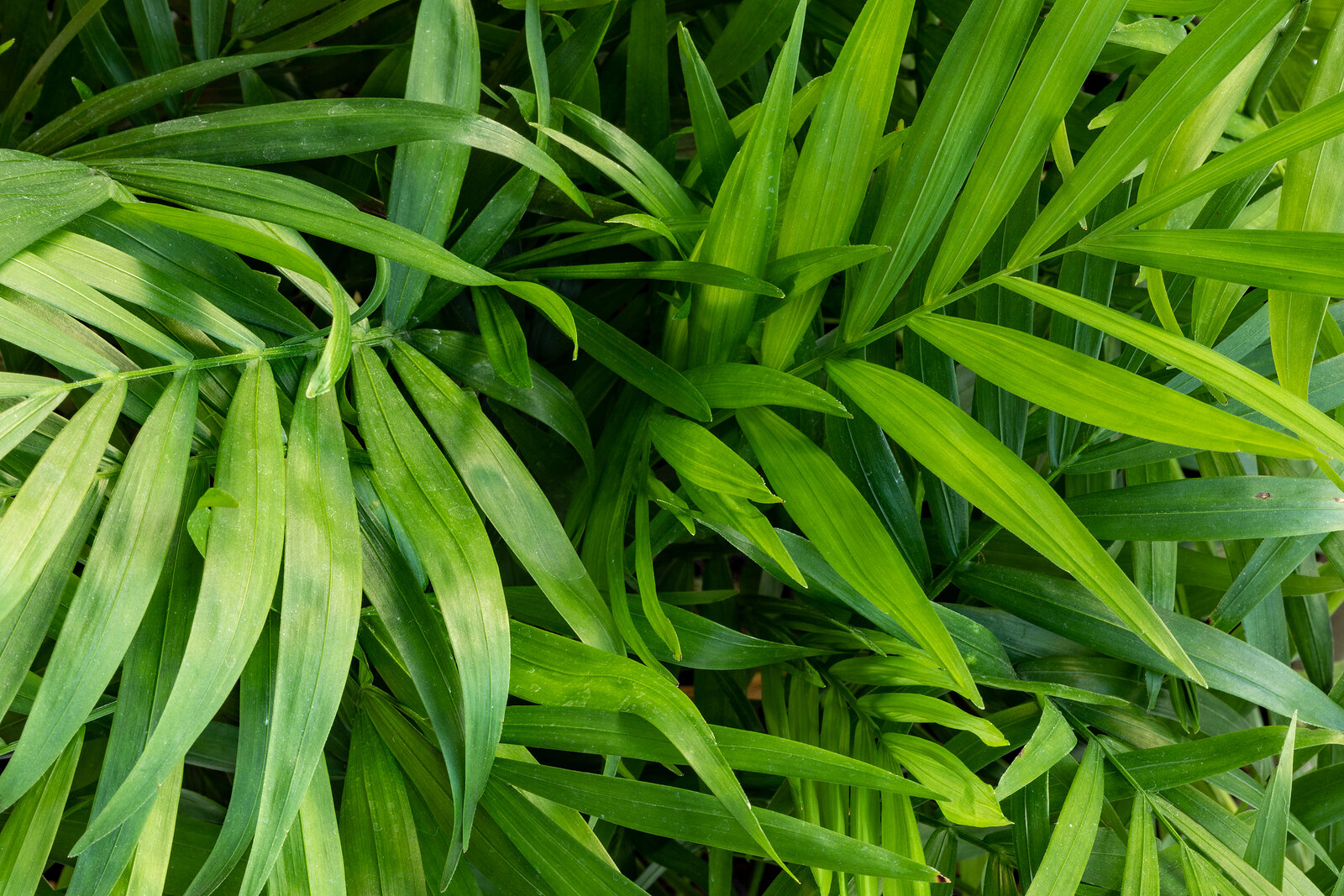 - Foliage: Graceful feathery palm with clumps of slender, reedlike canes that bear arching, shiny, strap-shaped green fronds.