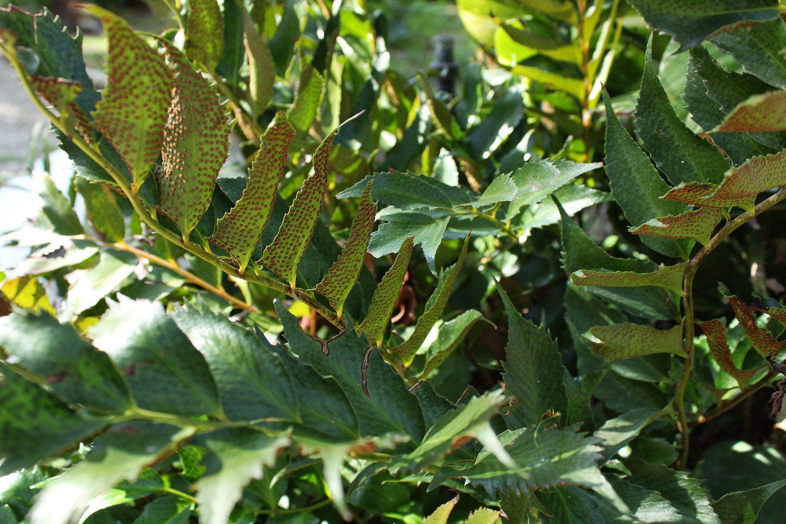- Foliage: Stiff, dark green fronds are glossy and leathery; fronds resemble holly leaves; deciduos in cold-winter regions.