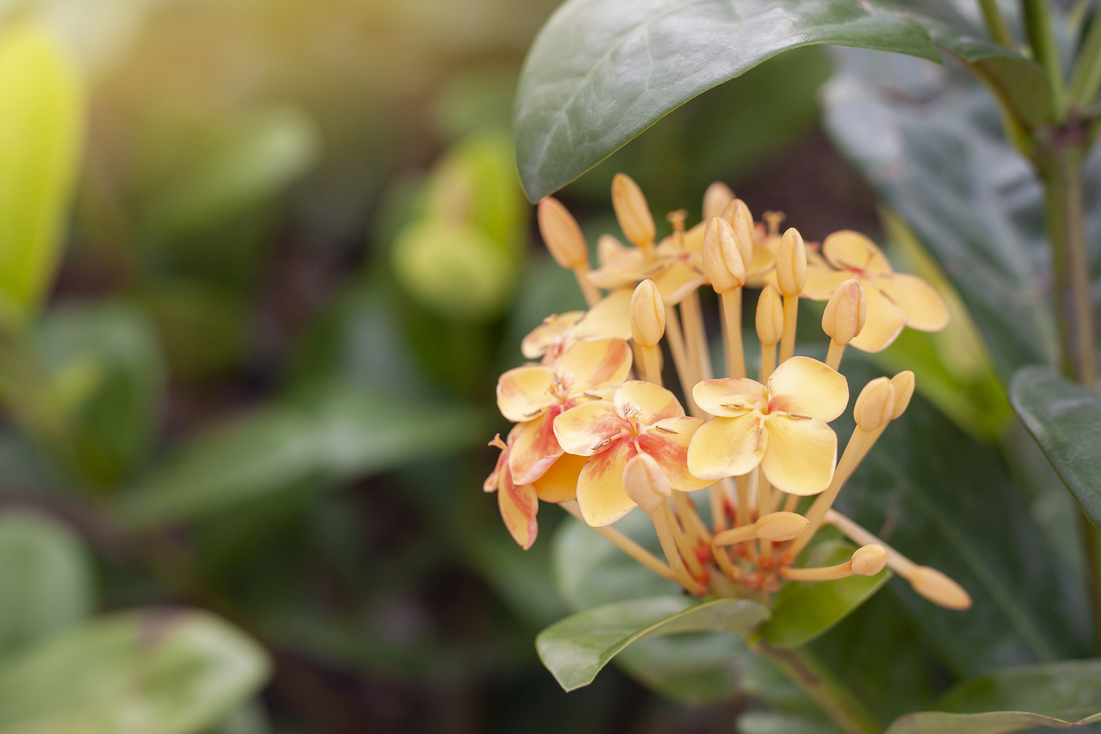 Ixora is a tropical shrub grown for its vibrantly colored, scented flowers. Ixora has shiny, leathery green leaves and four-lobed tubular flowers that can be red, yellow, orange, pink, or white.