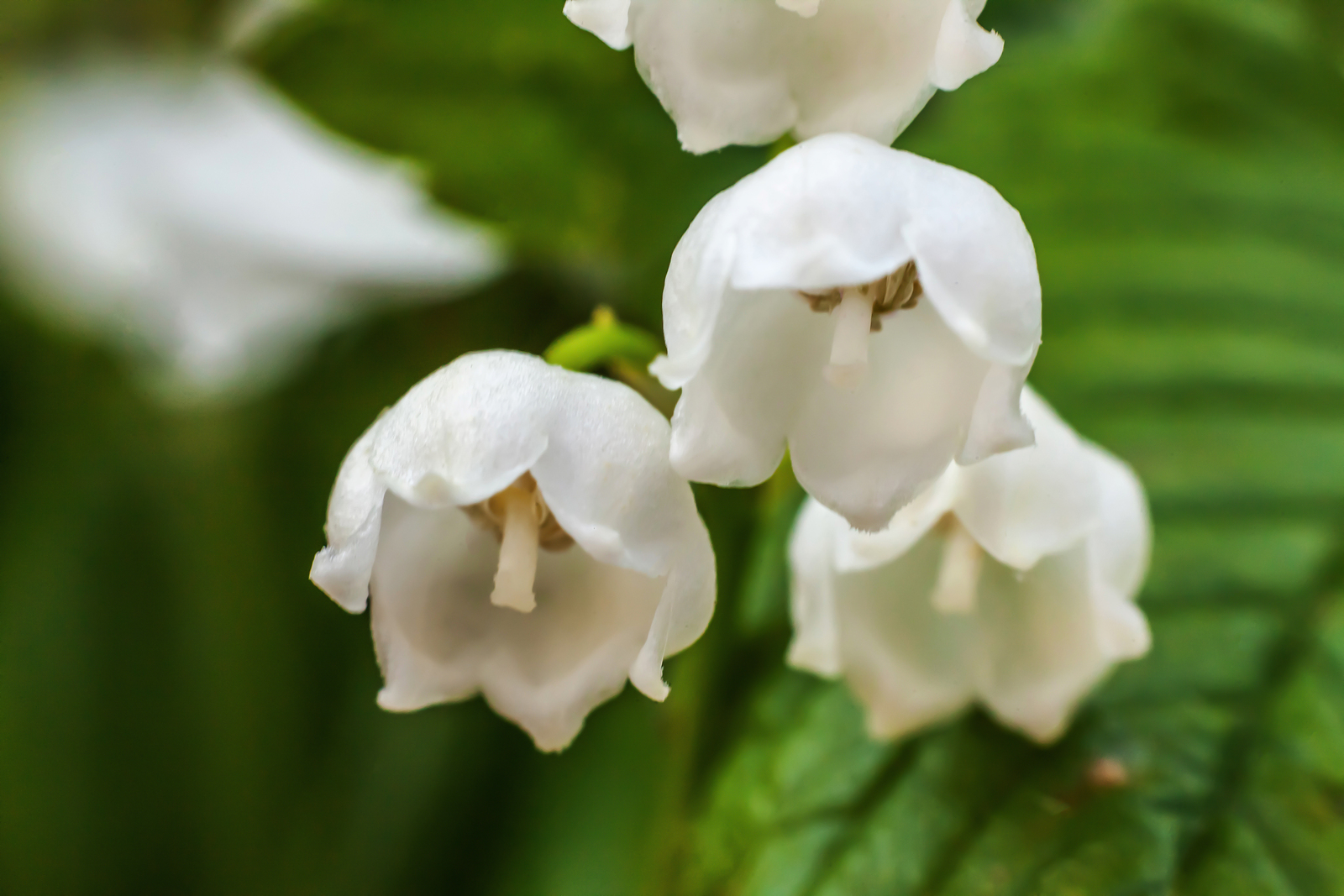 - Flowers: Pendent, fragrant white bell-shaped flowers with scalloped edges; blooms last 2 to 3 weeks; double and pink-flowered forms are available