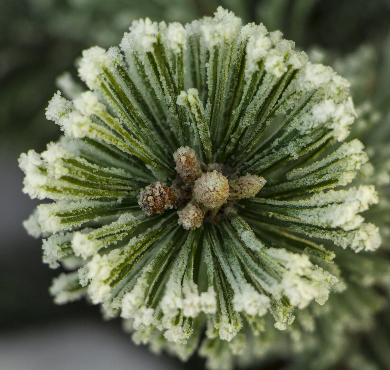 - Japanese White Pine, P. parviflora, dense growth, bluish-green needles in bundles of five.