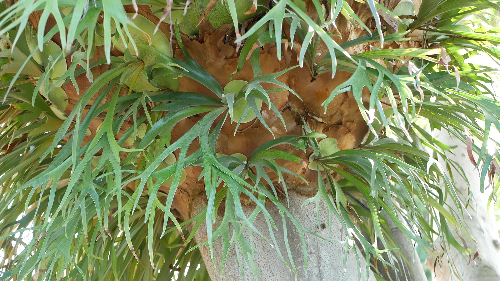 Platycerium are epiphytes; like other epiphytes they sustain themselves on leaf mold and the moisture that gathers around their aerial roots.