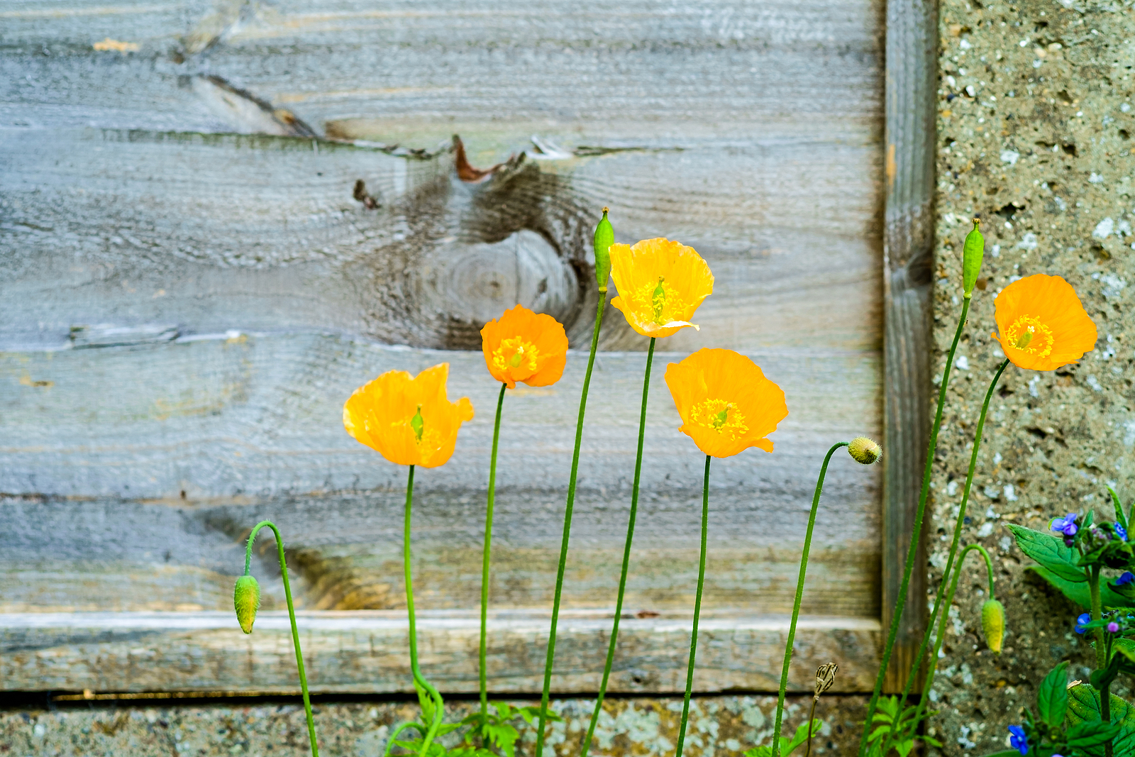 - Stylophorum diphyllum, celandine poppy, flaming poppy. Perennial grows to 12 inches tall and wide; downy rosette-forming; deeply incised mid-green leaves; bright golden yellow flowr to 1 inch across; blooms in summer.