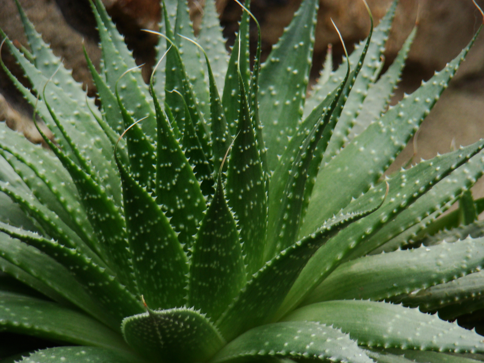 - Foliage: Forms rosettes of sharply pointed, flesh brownish to green leaves with a network of white veins